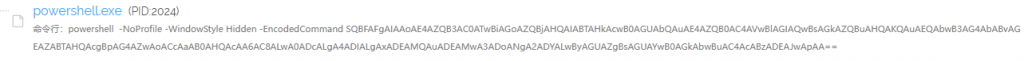 由动态分析进程树部分可见,沙箱捕获到样本执行 Powershell 命令,如图3所示。